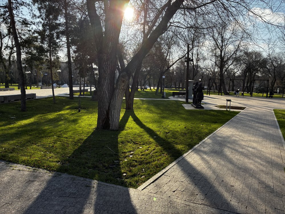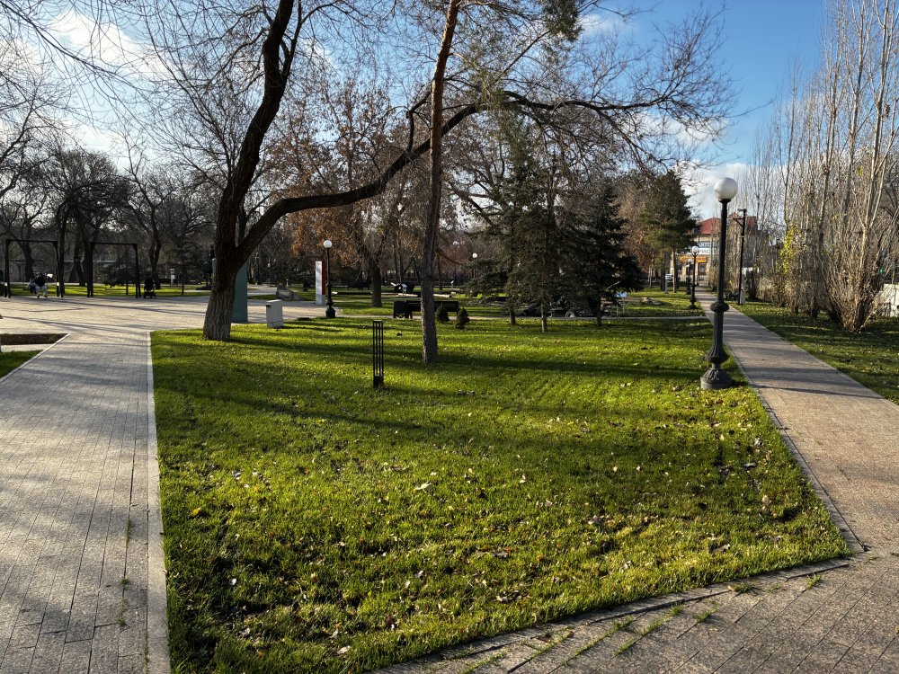 На пороге зимы Оренбург вдруг зазеленел. Из земли полезла свежая травка. Вот так, например, выглядят газоны в парке «Салют, Победа!» (или саду Фрунзе, как его называют многие оренбуржцы. Ощущение, что это вовсе не ноябрь, а май!