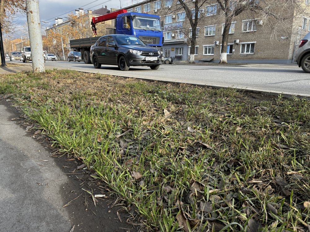 Трава зеленеет вдоль дорог во всем Оренбурге. Фото 1743.ru