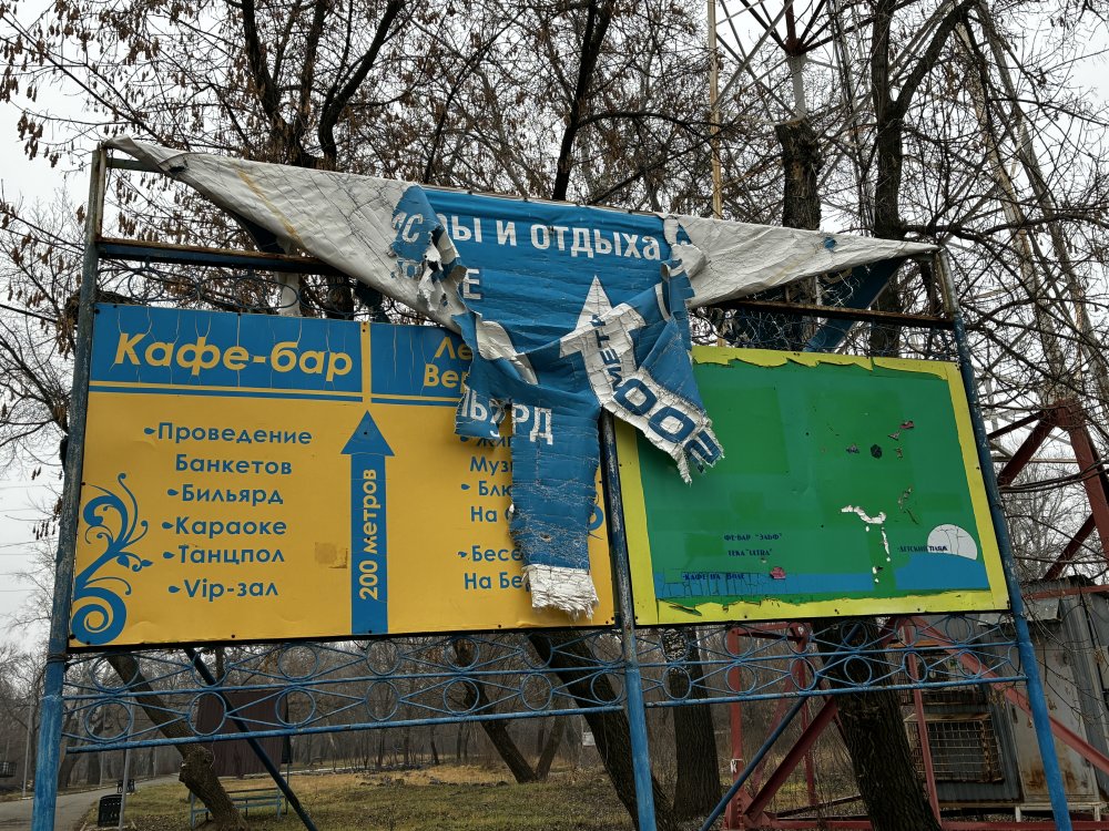Но проблема не только в насаждениях. С благоустройством тоже все печально. Даже плакаты — уж, казалось бы, копеечный вопрос, ерунда — выглядят как декорации для кино про крах цивилизации. Выцветшие, облезлые, изорванные на ленты… Почему бы их вообще не убрать? Видимо, руки не доходят.