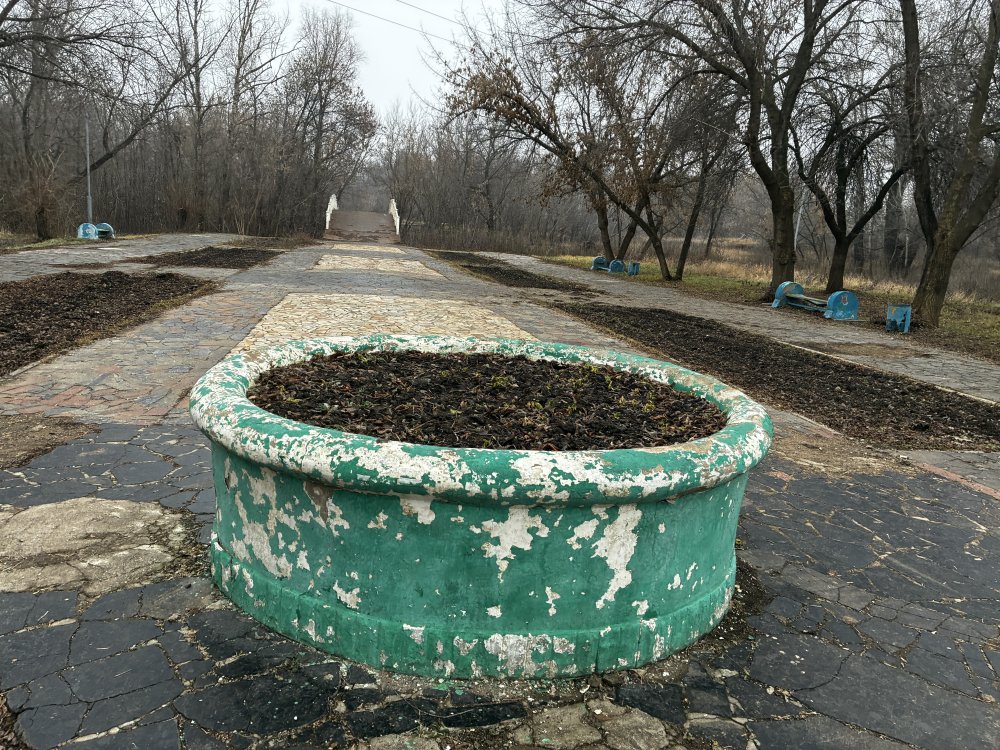 Дорожки раскрошились, поросли травой. Яркую мозаичную плитку почти не видно под слоем грязи и прелой листвы.