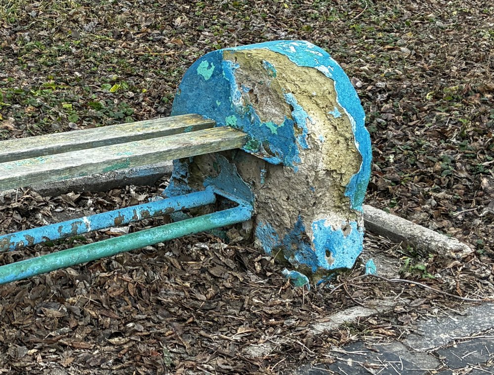 Лавочки, урны, вазоны для цветов — старым и обшарпанным выглядит буквально все.