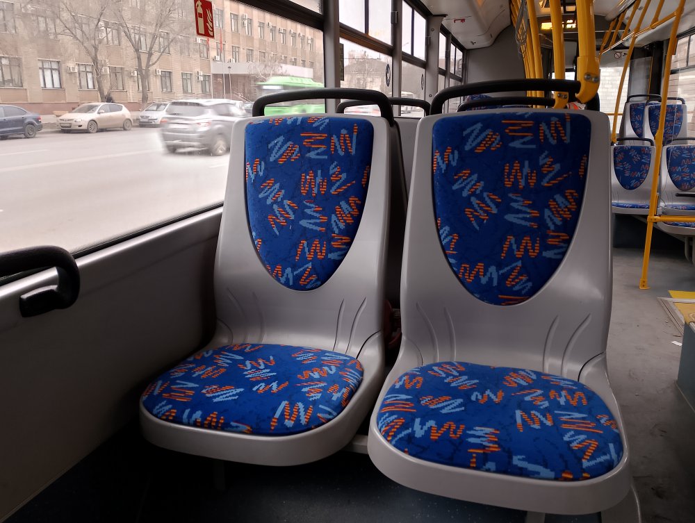 В первый день зимы «Горожанин» курсировал по маршруту №4 – от горбольницы №4 до улицы Пролетарской. Первое, что бросилось в глаза – в троллейбусе много места, можно и сидеть, и стоять с комфортом. Здесь 33 сиденья, а всего машина способна вместить до 90 человек.