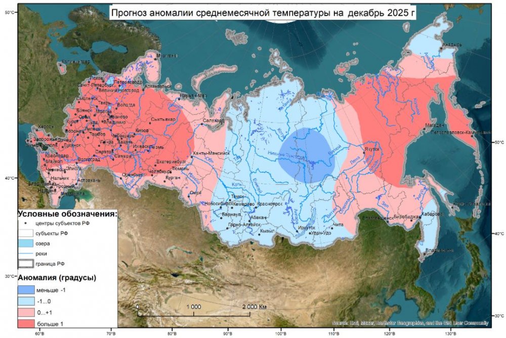 Карта температурных аномалий декабря на сайте Гидрометцентра России