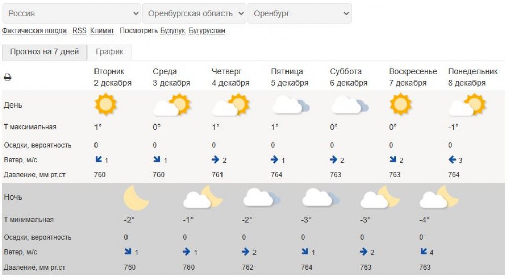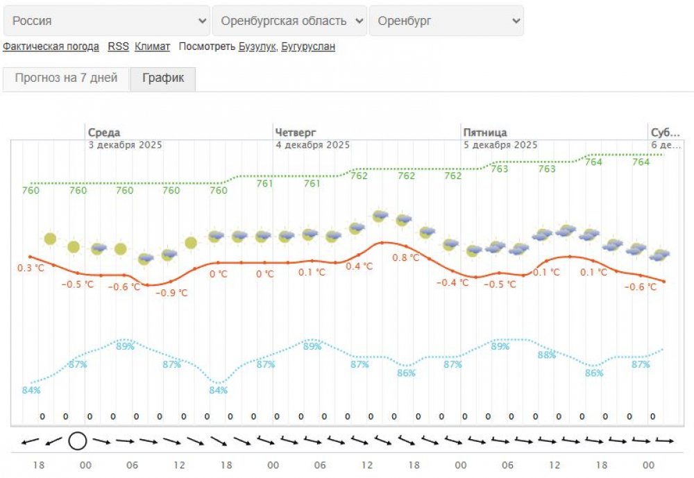 — Со 2 по 5 декабря 2025 года оренбуржцев продолжит радовать теплая, тихая и устойчивая погода. Регион будет находиться в области повышенного атмосферного давления затянутой низкой плотной облачностью. Осадки ожидаются в конце недели, преимущественно в виде снега, но небольшие по количеству. В этом году наступление метеорологической зимы затягивается — лишь на востоке области среднесуточные температуры опустились ниже нуля, а на остальной территории сохраняется глубокая осень.