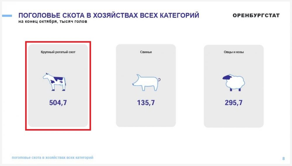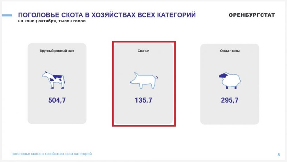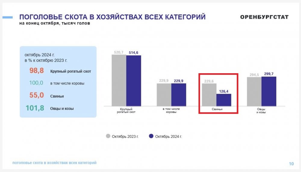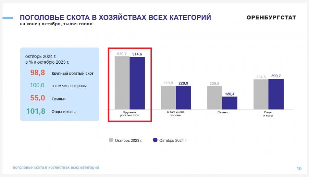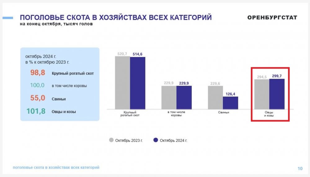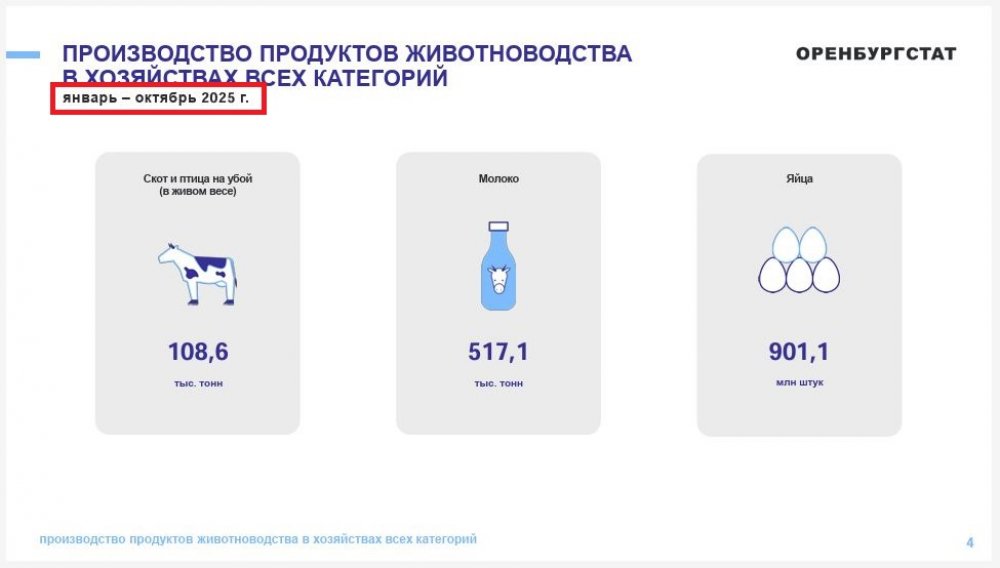 Территориальный орган Федеральной службы государственной статистики по Оренбургской области (Оренбургстат) опубликовал официальные данные о состоянии животноводства в Оренбургской области по состоянию на октябрь 2025 года.