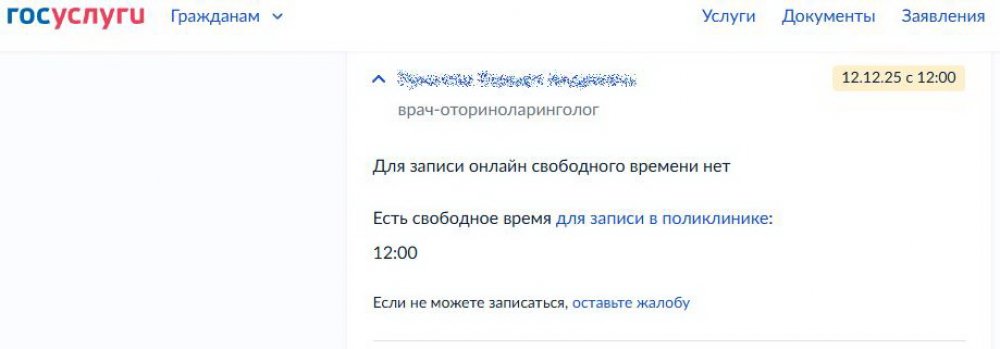 Смотрим узких специалистов. Лор: есть окно, но только через поликлинику. Второй лор в той же больнице — два окна, но снова онлайн не предлагать.