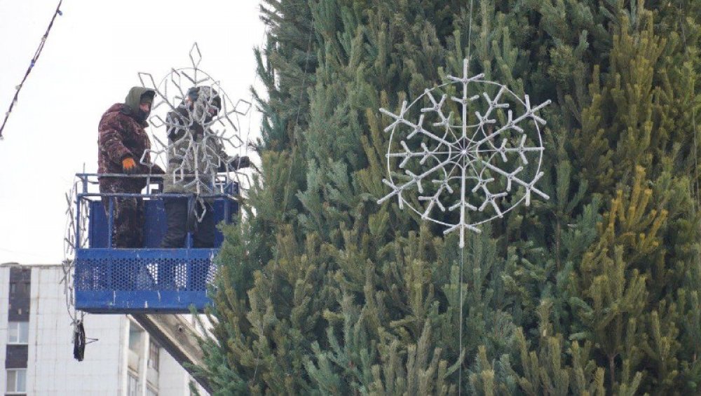 В Оренбурге завершают монтаж главной ёлки Южного округа. Зелёная красавица высотой 22 метра будет стоять в сквере имени Ю.А. Гагарина. Каркас заполнен натуральной хвоей. В эти дни специалист с помощью автогидроподъемника украшают ёлку декоративными снежинками. Также на праздничном дереве появятся гирлянды и разноцветные шары.