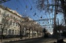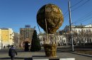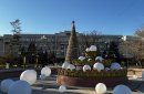 Осушенный фонтан перед Домом Советов украшен разнокалиберными шарами, которые в темноте сияют мягким матовым светом и особенно эффектно выглядят во время снегопада.