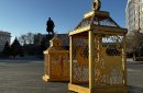 Инсталляции, у которых обычно фотографируются жители и гости Оренбурга, тоже заняли свои места — готова и светящая золотая карета, и гигантский елочный шар, и зверушки-игрушки, которые выглядывают из подарочных коробок. Конечно, ночью они будут выглядеть еще интересней, но и сейчас смотрятся очень даже неплохо.