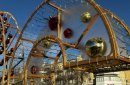 «Звездное небо» на Советской переливается гирляндами, которые шикарно смотрятся в темноте, но почти не видны днем; теперь к ним добавили множество ярких игрушек — и продолжают добавлять.