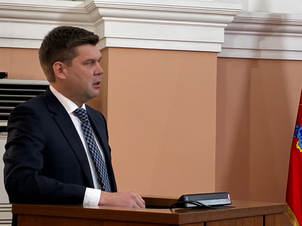 Альберт Юмадилов перед представлением своей программы по развитию Оренбурга на заседании горсовета; фото: 1743.RU