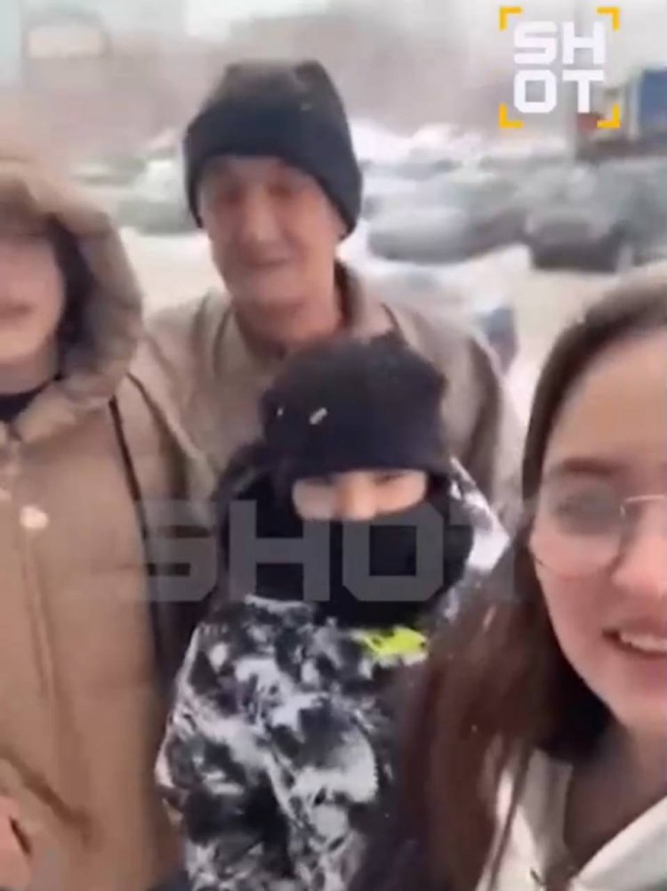 На фото тот самый дворник и жители дома; фото: скриншот с видео SHOT