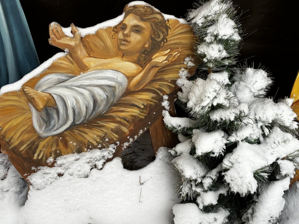 Точнее, их даже два: один внутри храма, второй — на церковном дворе. «Вифлеемская» пещера заметена снегом, и фигуры людей в легких южных одеяниях при 20-градусном русском морозе выглядят необычно… и особенно трогательно.