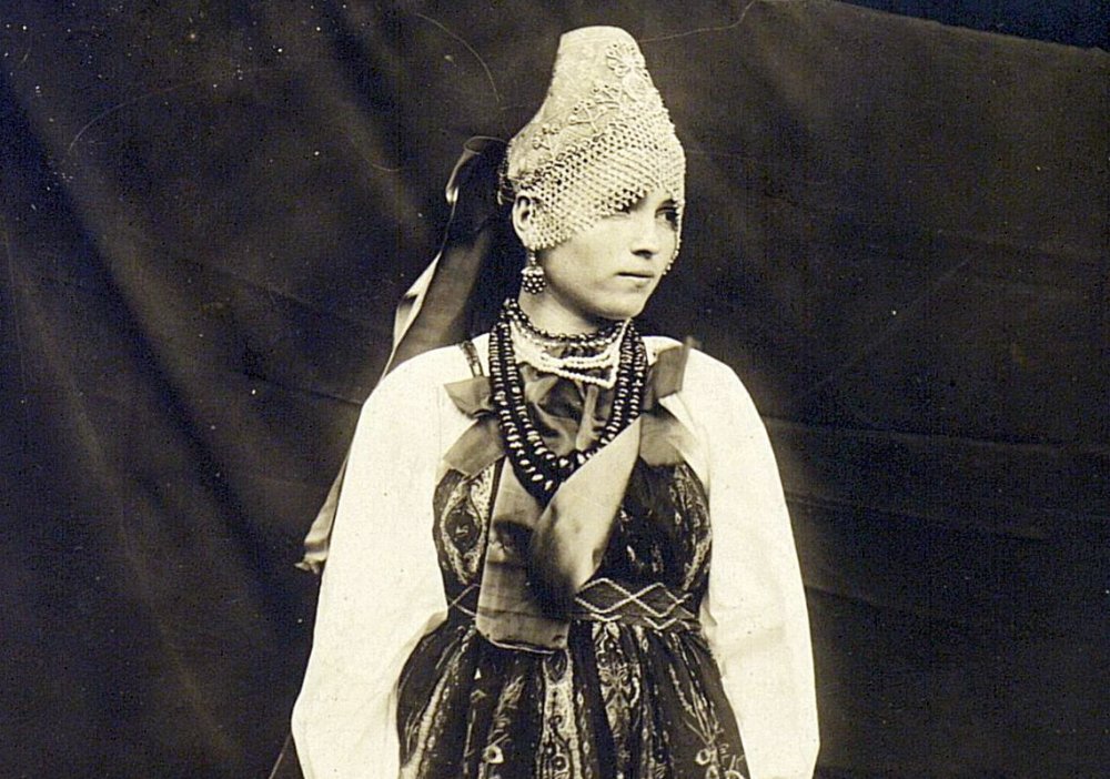 Крестьянская девушка в праздничном наряде. Фото сделано этнографом Михаилом Круковским в 1909 году во время экспедиции в Оренбургскую губернию