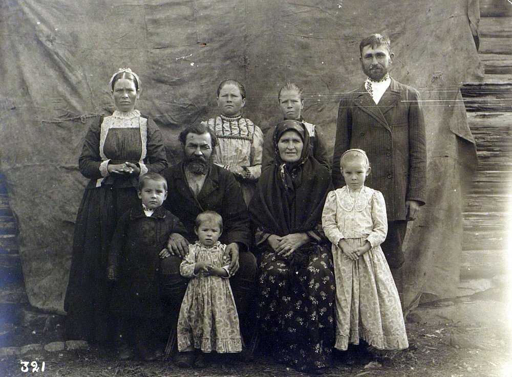 Крестьянская семья. Фото сделано этнографом Михаилом Круковским в 1909 году во время экспедиции в Оренбургскую губернию