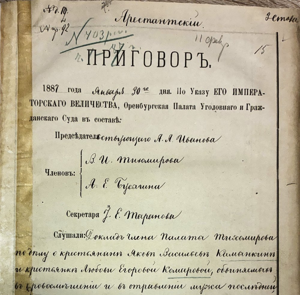 Из приговора Оренбургской палаты уголовного и гражданского суда: