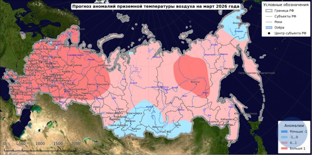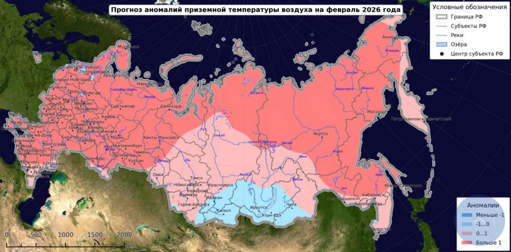 Прогноз природных аномалий от Росгидромета на февраль 2026