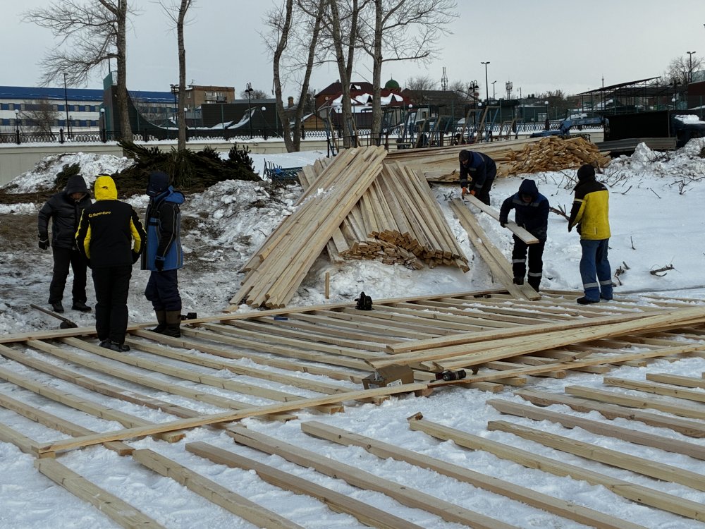 В Оренбурге на Урале начали возводить крещенскую купель
