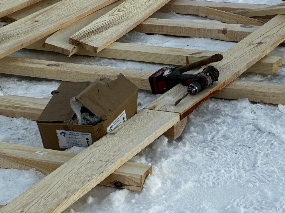 На льду сколачивают деревянный настил. Фото 1743.ru