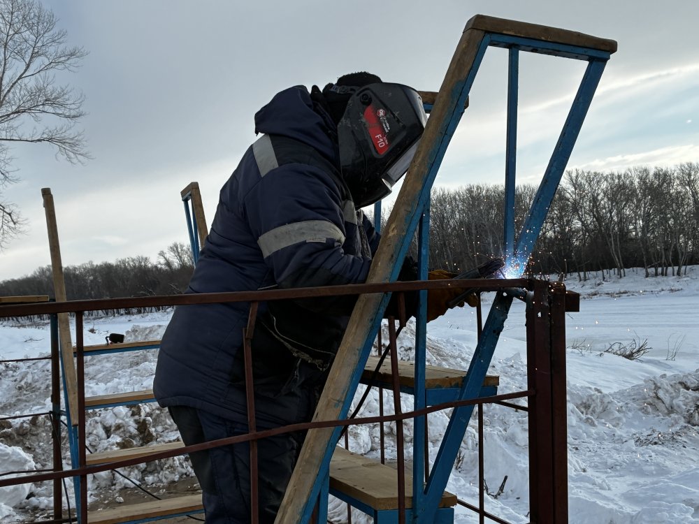 Чуть в стороне сваривают лестницу, по которой люди станут погружаться в прорубь. Сама она стальная, надежная, но ступени и поручни, для удобства людей, деревянные.
