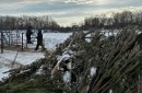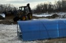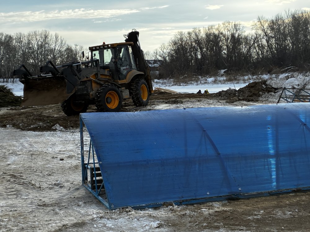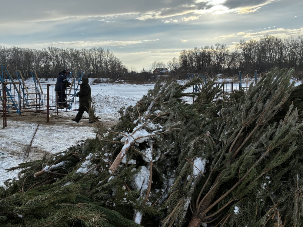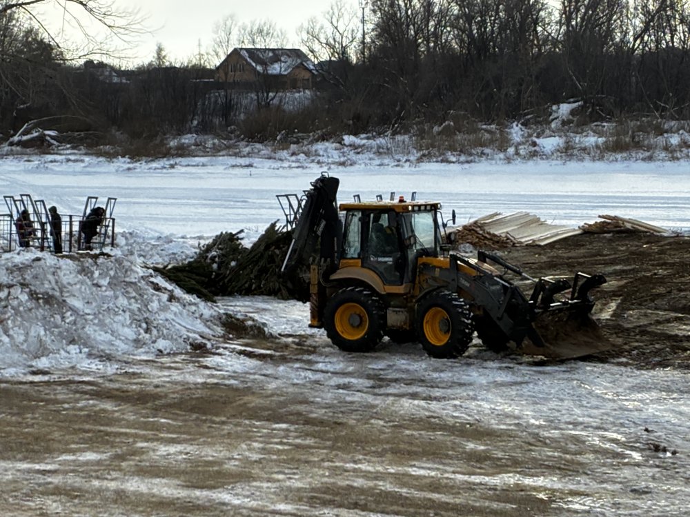 Лежат на берегу навесы, которые должны защищать народ от ветра и снега, навалена целая гора сосен. Все это будет смонтировано в ближайшие пару дней — к празднику купель однозначно будет готова.