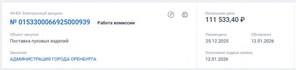 Оренбургская мэрия объявила закупку: она готова заплатить 111 тысяч 533 рубля и 40 копеек за «пуховые изделия».