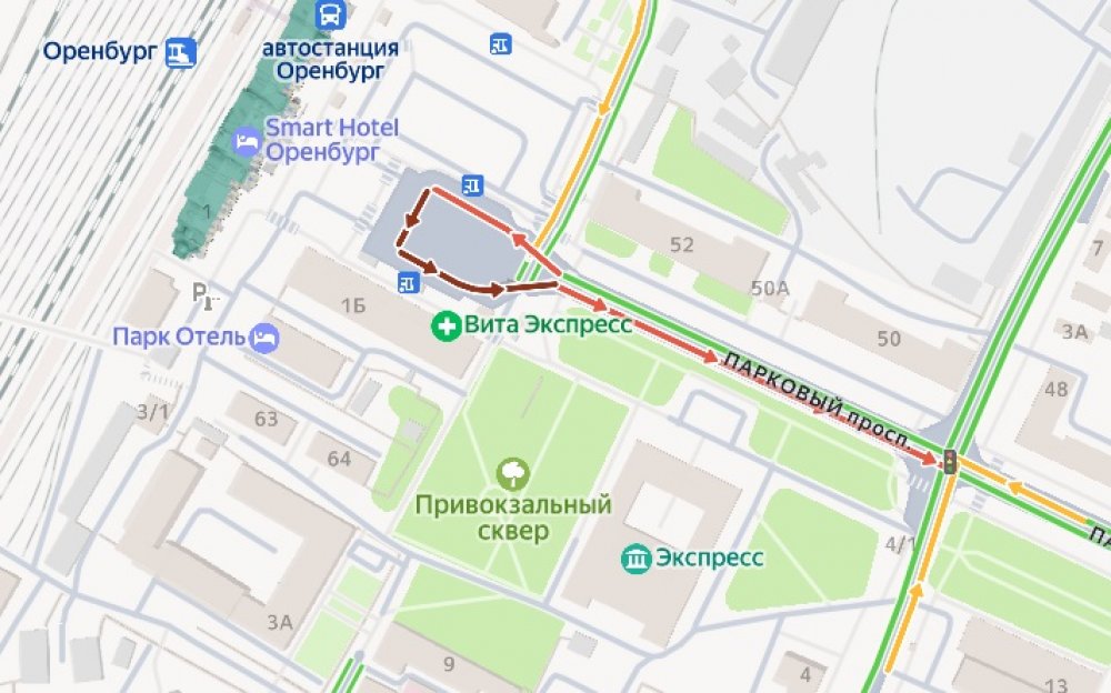 Пробки в Оренбурге. Фото: сервис Яндекс.Карты