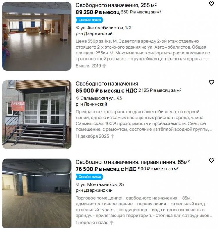 Снова заглянем на тот же сайт: плюс-минус за те же деньги в Оренбурге можно снять коммерческое помещение площадью до 255 квадратных метров!