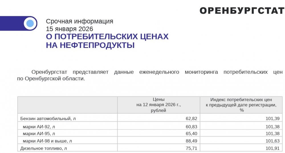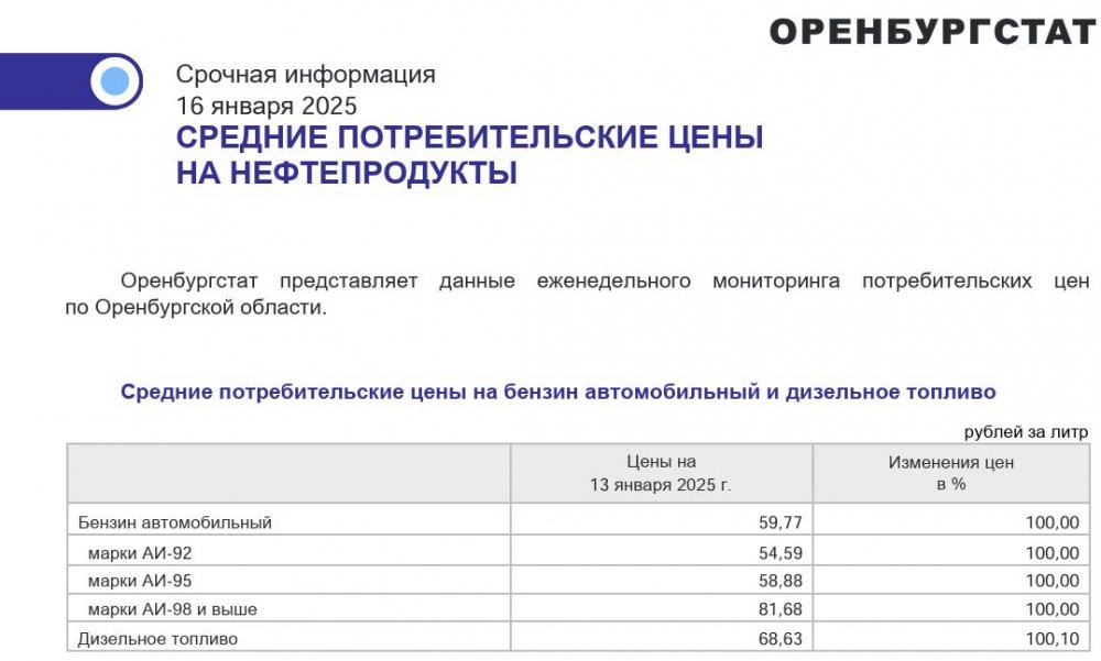 Мы нашли на сайте Оренстата аналогичный отчет от 13 января 2025 года. Вот цены того времени: