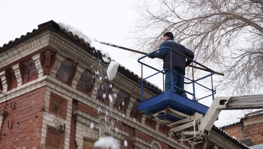Коммунальщики Оренбурга борются с сосульками и наледью на крышах зданий