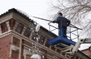 Коммунальщики Оренбурга сбивают сосульки с крыш; фото: пресс-служба администрации Оренбурга