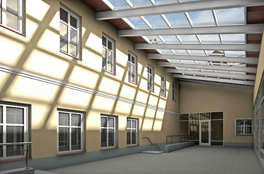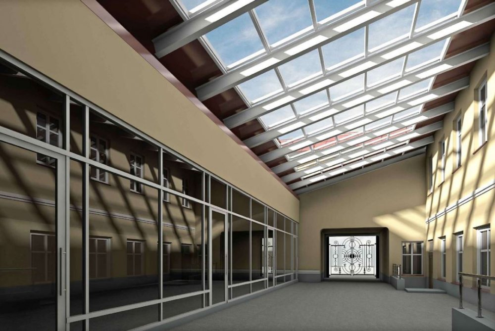 Предполагается, что фасад здания будет выкрашен в тот же цвет, что и основное здание музея, и вообще станет стилизован под него, так что все это вместе создаст единый комплекс. Кстати, интересный момент: часть крыши обновленного здания будет стеклянной. Выглядеть оно должно вот так.