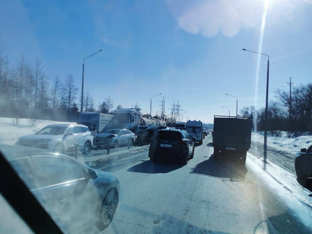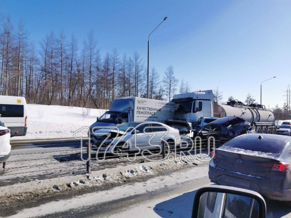 По данным полиции, столкнулись 7 машин: грузовой автомобиль «Мерседес», «Джили», «ГАЗ», «КИА», «Шкода», «Чери» и «Хендай». В больницу увезли водителя и пассажира автомобиля «КИА», а также ребёнка из «Джили». Инспекторы разбираются в обстоятельствах аварии.
