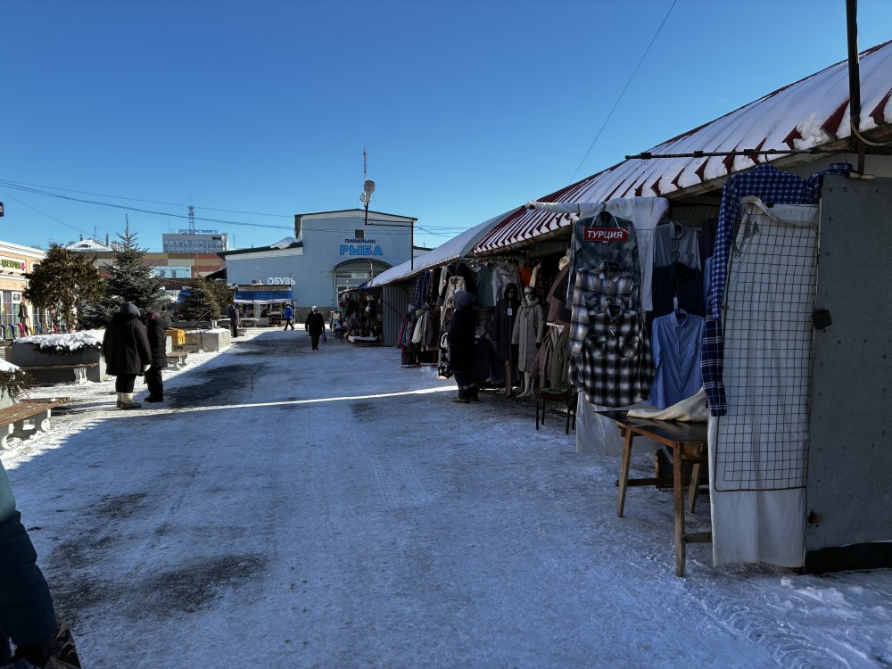 Несмотря на хорошую погоду, на центральном рынке непривычно пусто: торгующих почти нет. Те, кто все-таки пришли, собирают товар. На некоторых ларьках и павильонах спешно развешивают яркие афишки: «Распродажа».