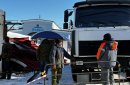 Подходы к месту, где ведутся работы, перетянуты заградительной лентой, среди обломков ездит спецтехника, суетятся рабочие с болгарками горелками газовой сварки. Над площадью стоит шум и лязг.