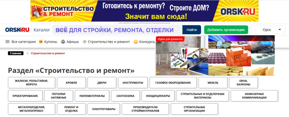 Поможет в этом  раздел “Строительство и ремонт в Каталоге организаций (18+)  на ОРСК.РУ. Вам не нужно бегать по магазинам.  Сидя за компьютером можно легко найти нужную информацию. Вы сэкономите время и деньги.  В разделе есть 19 рубрик, включающие магазины отделочных и строительных материалов, оконные фирмы, ремонтные бригады, а также сантехника, двери, мебель, металлоизделия, пиломатериалы, кровля и мн. др.