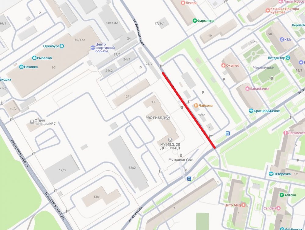 Судя по техзаданию, тротуар необходимо проложить от здания по адресу Транспортная, 12/1 (в нем располагается подразделение ГАИ) до пересечения с улицей Есимова.