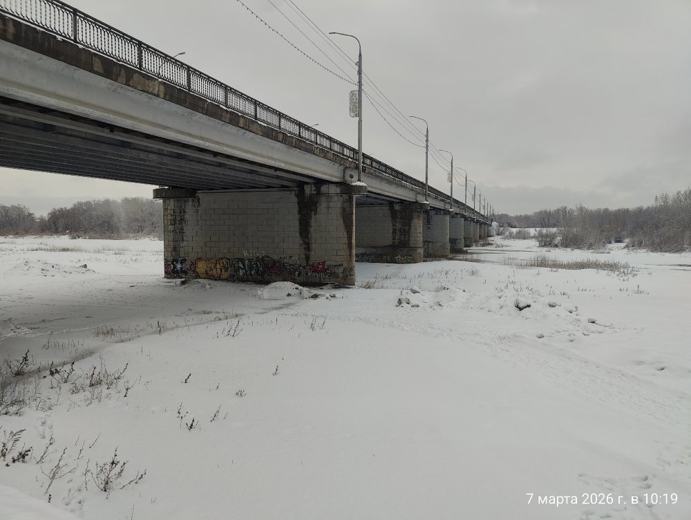 10 марта 2026 года был завершен очередной ямочный ремонт дорожного покрытия моста. О действенности мер можете судить по видео, не прошло и недели, а ездить вновь можно только по левой полосе при движении из центра в Южный, по правой едут только отчаянные или неместные.