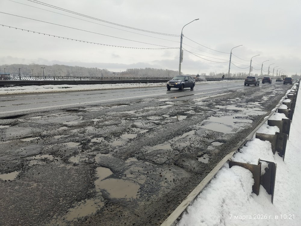 Состояние моста через Урал на следующий день после ямочного ремонта