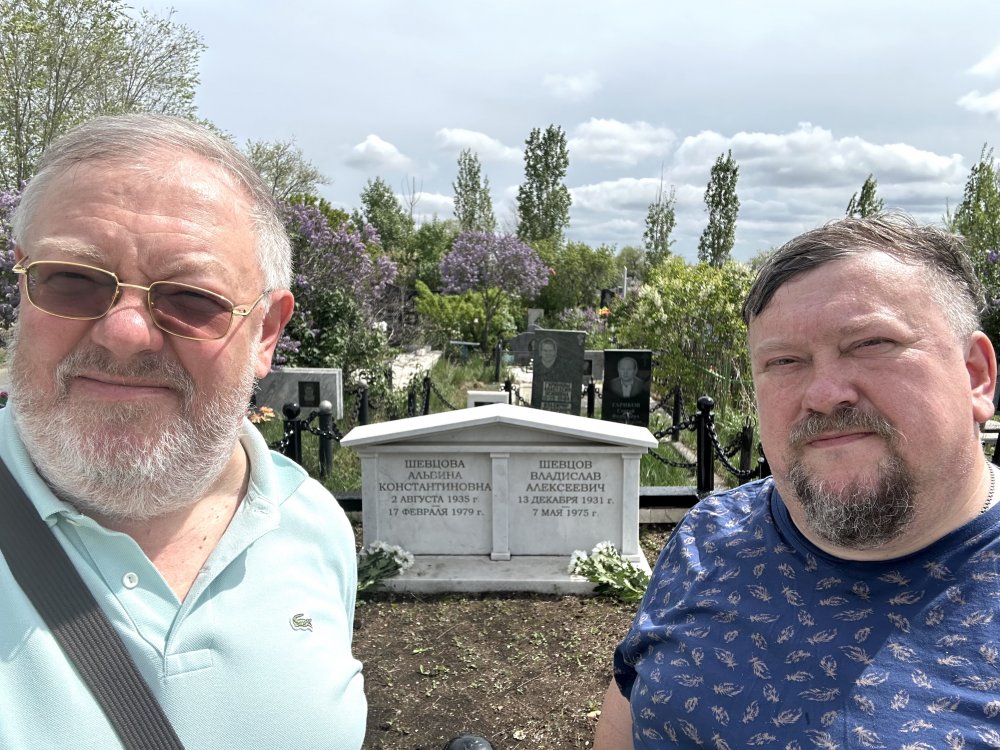 Сергей (справа) и Алексей* Шевцовы на Первомайском кладбище Орска у могилы родителей, 7 мая 2025 года