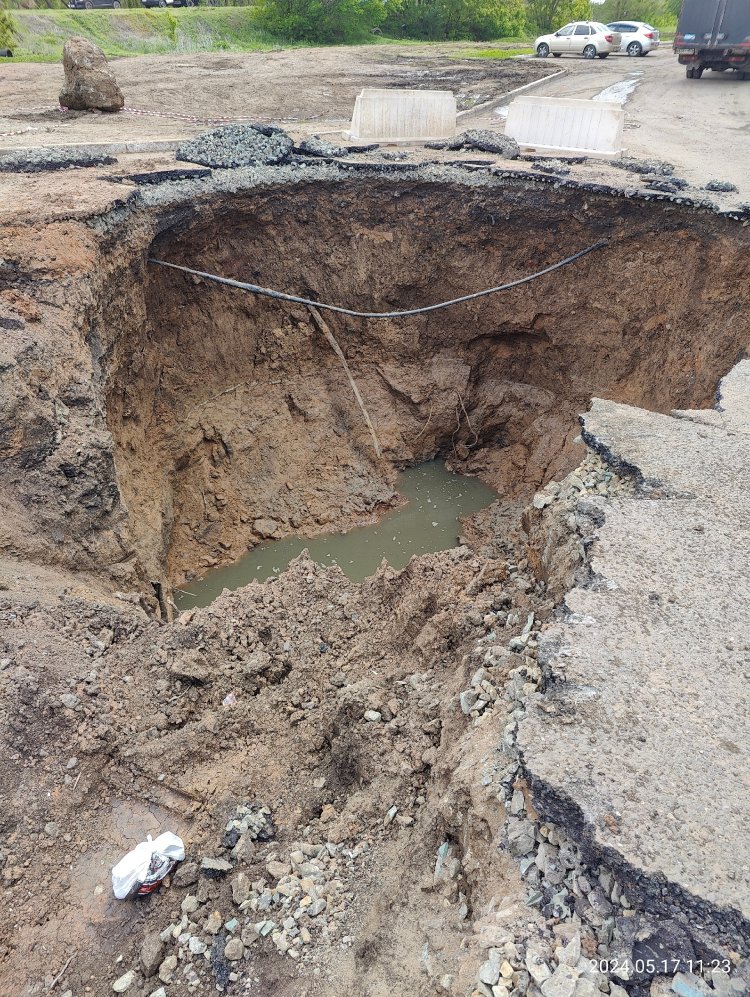 Началось все в мае 2024. Когда в небольшое углубление в дороге внезапно провалилась передними колесами «Газель». Потом яма стала расти, достигнув поистине испалинских размеров.