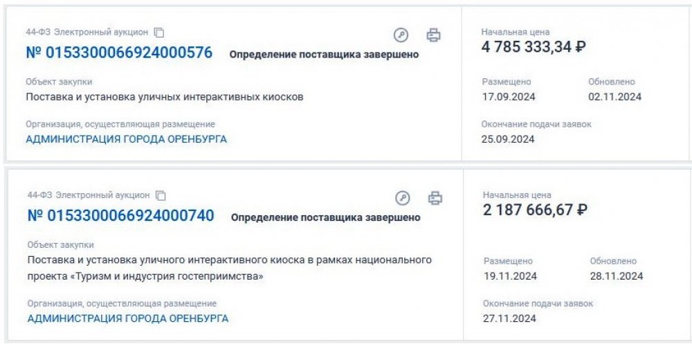 Между тем, эти «умные игрушки» стоили немалых денег. Приобретались они осенью 2024 года через процедуру госзакупок. Один интерактивный киоск (речь идет именно об экранах — собственно киоск, то есть домик, в котором должен сидеть человек, продающий сувениры, покупался отдельно, за совсем другие, и тоже немалые, деньги) оценивался в 2,1 миллиона рублей, еще 2 — в 4,7 миллиона.