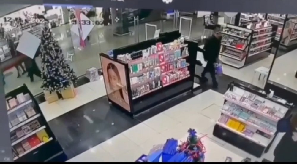 Момент кражи в магазине попал на камеры видеонаблюдения: мужчина смотрит парфюм, а потом незаметно кидает его в пакет.Видео предоставлено УМВД по Оренбургской области.