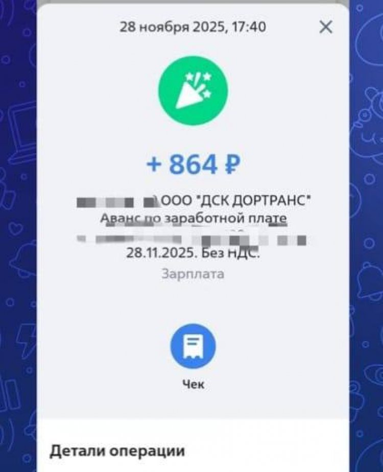 К своему посту он приложил скрин оповещения: один из рабочих получил аванс в размере 864 рублей!