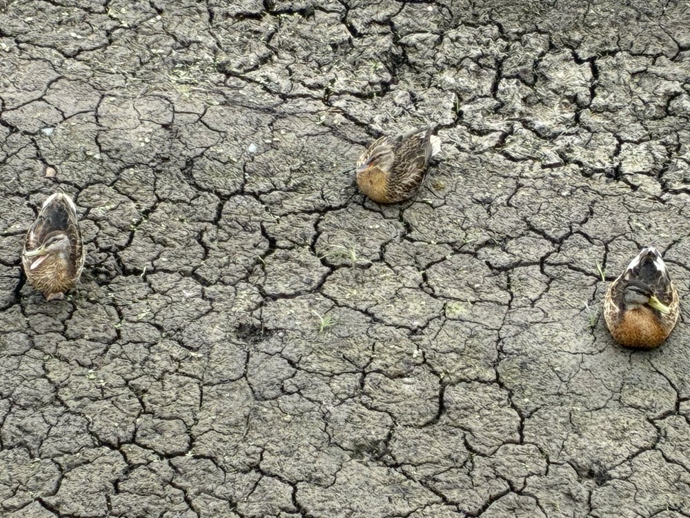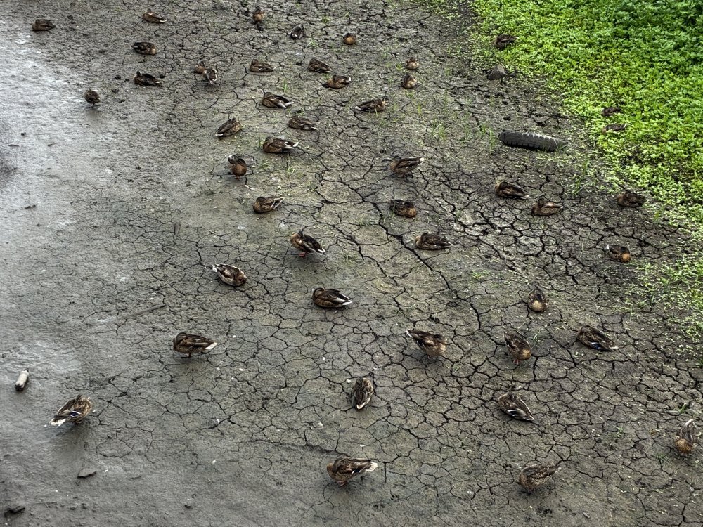 Напомним, в прошлом году весной и в начале лета здесь поселилось несколько десятков утиных семейств. Мамы с маленькими утятами прятались в густо растущих камышах, но иногда подплывали к самому мостику — за хлебом, который им кидали гуляющие по тропе здоровья. Собственно, для того, чтобы покормить уток и пофотографировать их, многие сюда и приходили. Но к концу лета болото пересохло, и птицы, пожив какое-то время на растрескавшейся от жары земле, улетели в более гостеприимные места.