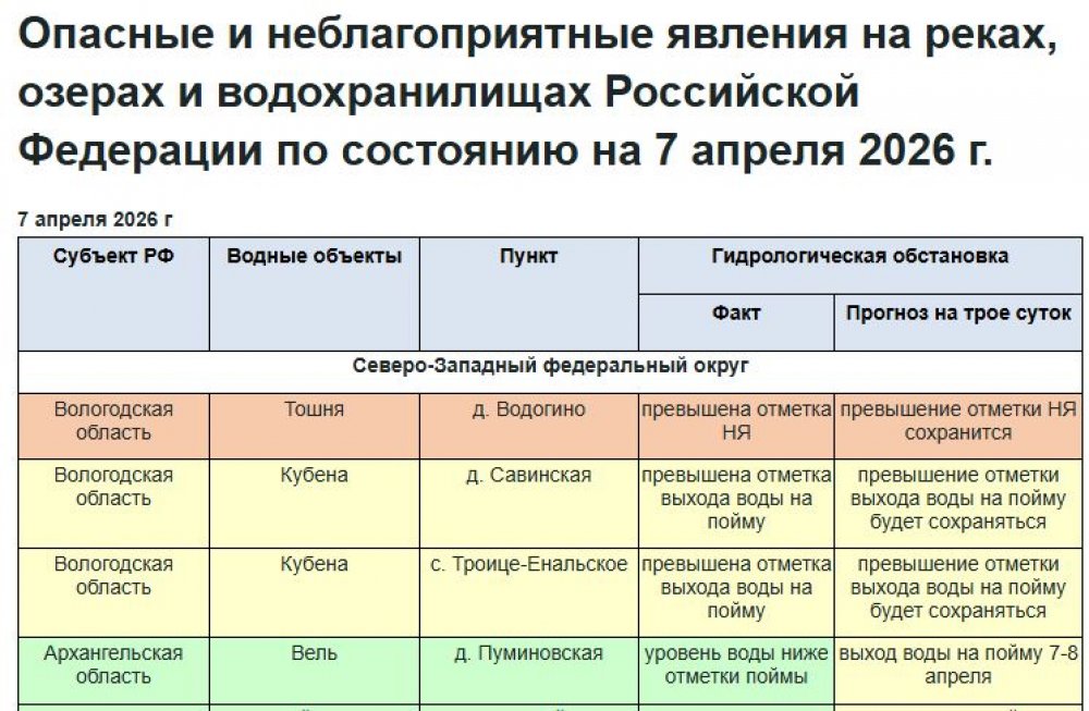 В официальном отчете Росгидрометцентра «Опасные и неблагоприятные явления на реках, озерах и водохранилищах Российской Федерации» по состоянию на 7 апреля 2026 года фигурируют два водоема Оренбургской области.